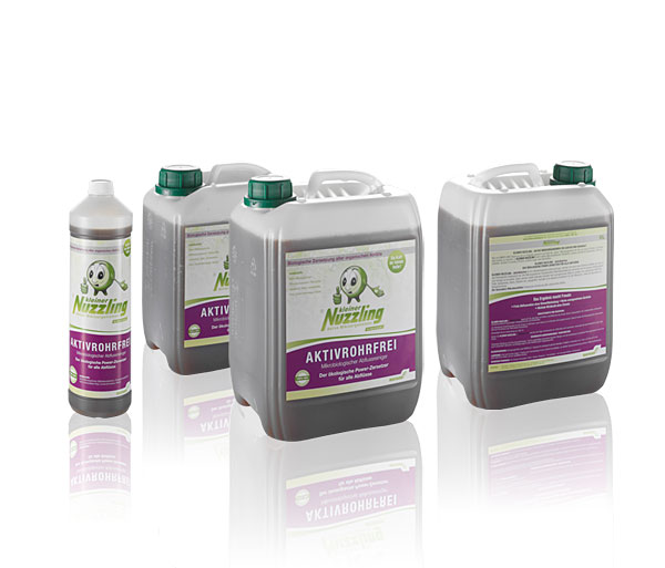 KLEINER NUZZLING - AktivRohrfrei ist ein mikrobiologischer Abflussreiniger, welcher sich durch den Schmutz arbeitet, der sich an den Rohrwänden festgesetzt hat. Die Mikroorganismen (hauptsächlich Milchsäurebakterien) verbreiten sich im ganzen Abflusssystem und reinigen es komplett. Dabei werden weder lebendes Gewebe noch anorganisches Material, sondern nur organischer Abfall wie Fette, Speisereste, Haare, Fäkalien etc. angegriffen. Deshalb ist es absolut unschädlich für den Menschen, sowie für alle Arten von Abwasserrohren.